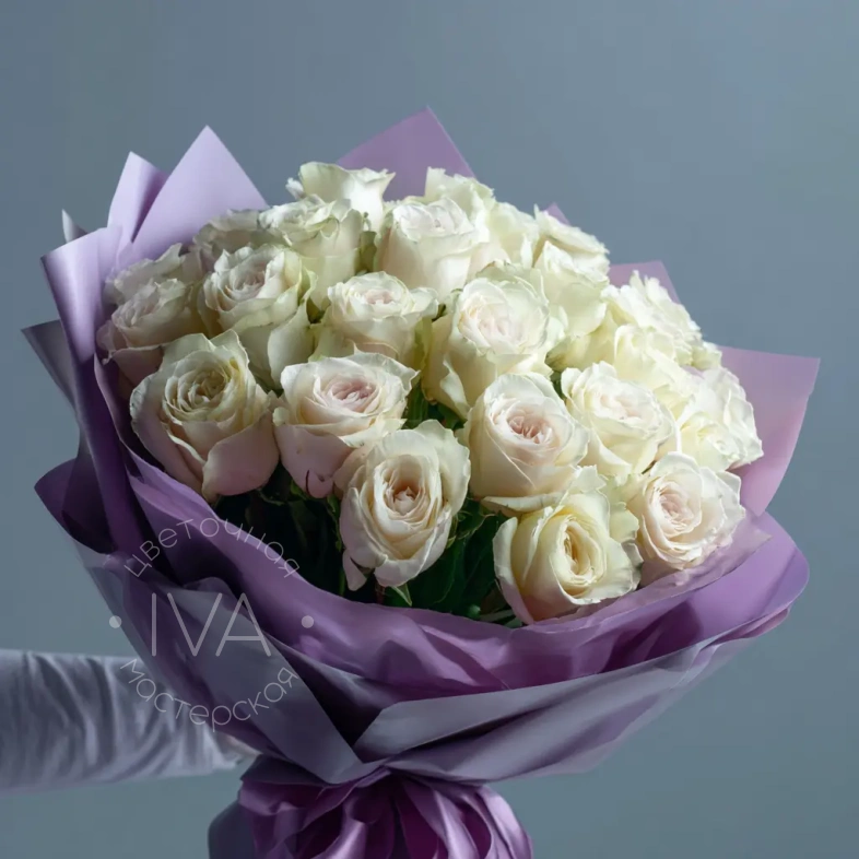 Мягкий и тёплый букет, навеянный атмосферой вечернего покоя. Белые розы создают уютное и гармоничное настроение. Идеален для романтического жеста или признательности.