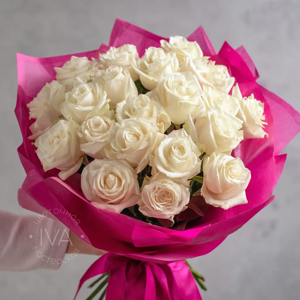 Композиция, отражающая искренность, нежность и заботу. Белые розы в этом букете говорят без слов — о чувствах, которые не нуждаются в объяснении. Универсальный выбор для самых разных поводов.