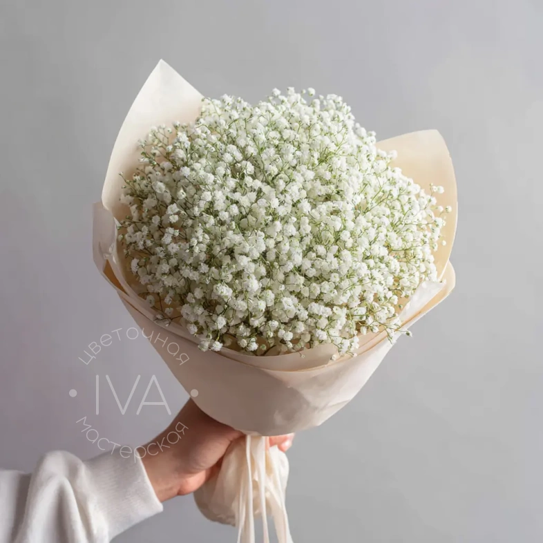 ГлавнаяКаталогМонобукетыГипсофилыМонобукет из гипсофилы «Лёгкий штрих»