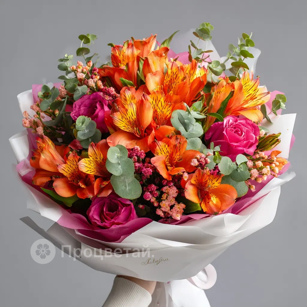 Энергичный букет с контрастными оттенками — для людей с активной жизненной позицией. Альстромерии создают праздничное настроение и передают импульс радости. Подходит для коллег, друзей, преподавателей.