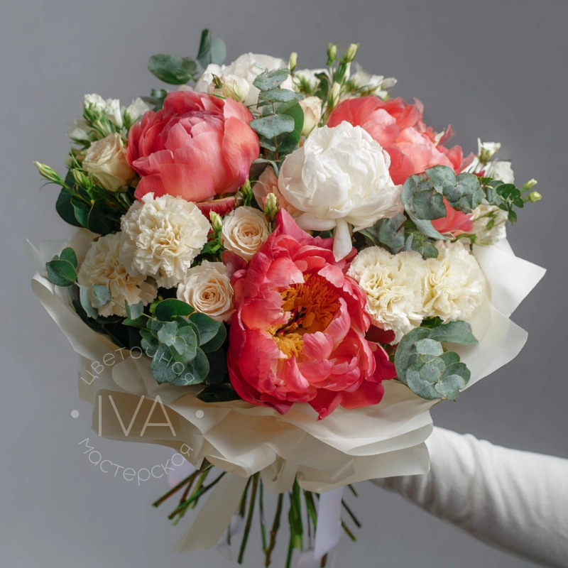 ГлавнаяКаталогБукетыПионыБукет с пионами «Персиковый закат»
