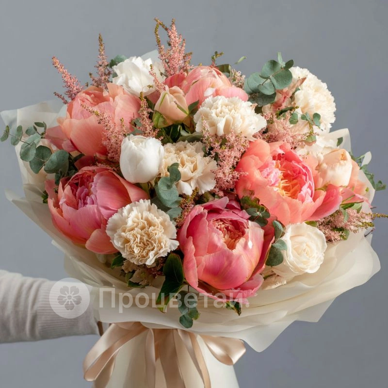 Букет с пионами «Облачное настроение»