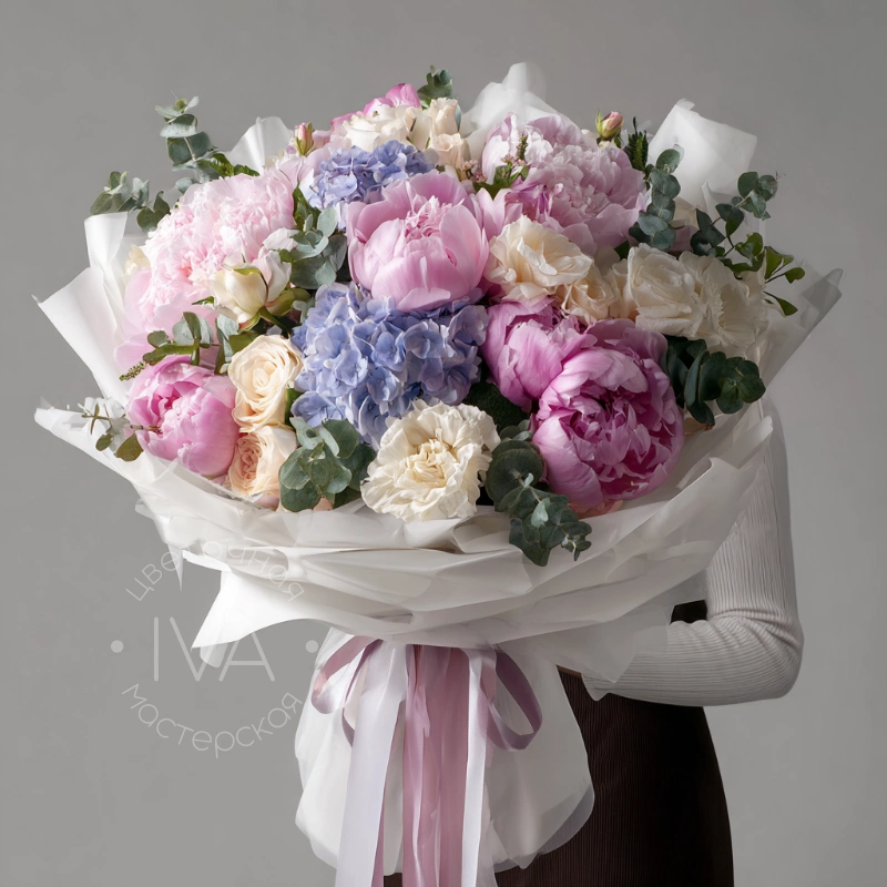 ГлавнаяКаталогБукетыПионыБукет с пионами «Тёплая акварель»