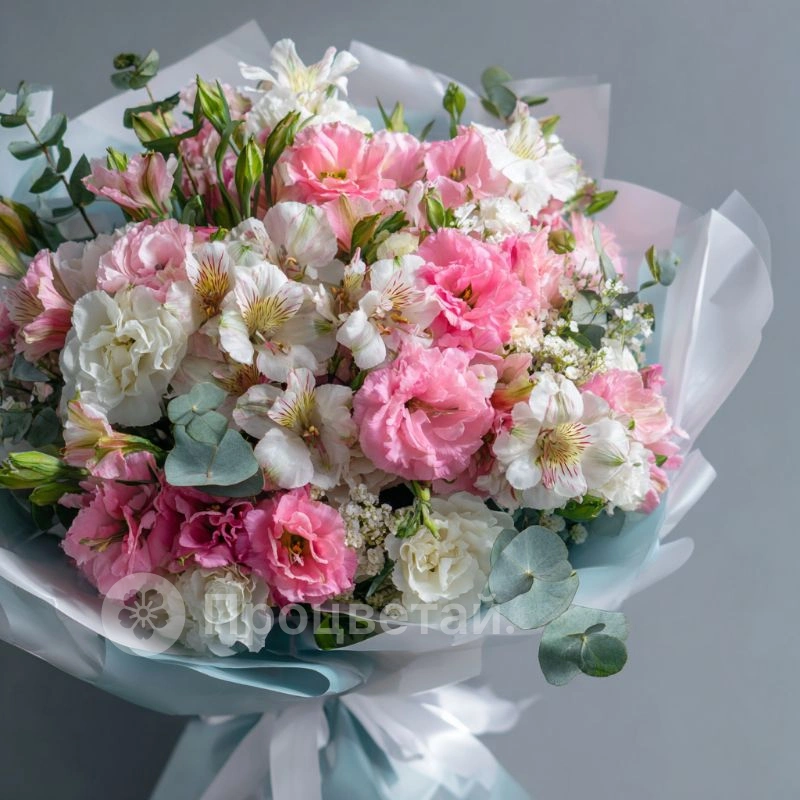 Свежесть и прохлада раннего утра — в каждом лепестке. Эустомы создают ощущение чистоты и спокойствия, которое хочется подарить близким. Универсальный букет с мягким посылом.