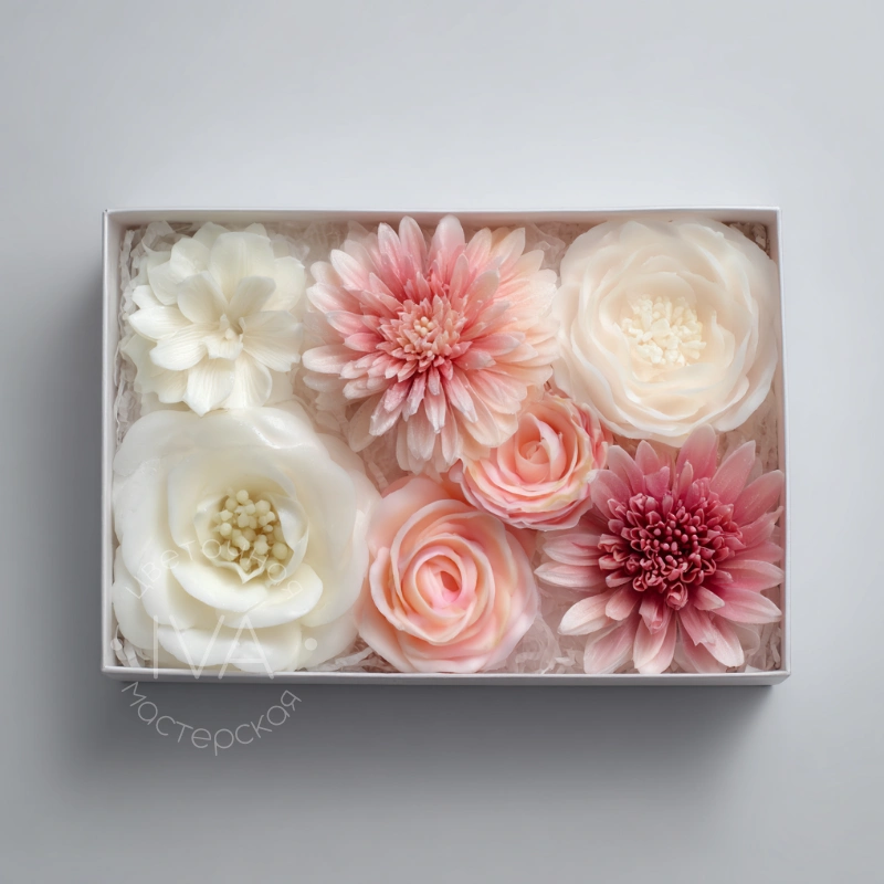 ГлавнаяКаталогПодаркиНабор цветов из мыла «Нежный рассвет»