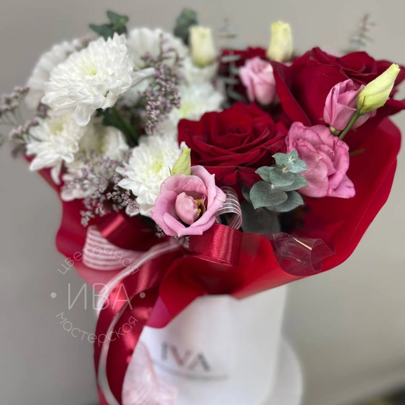 ГлавнаяКаталогКоробка с хризантемой и розой