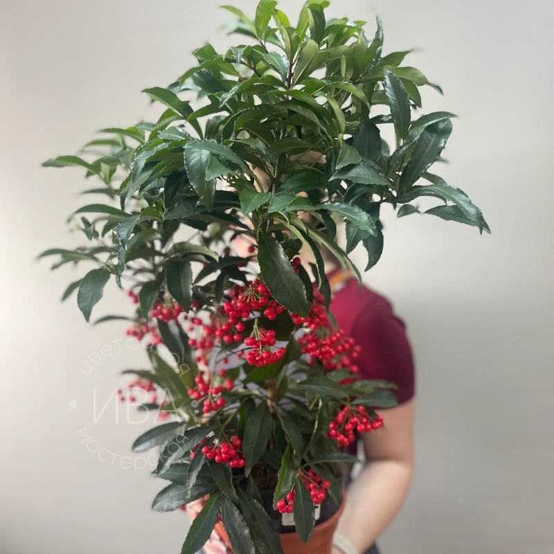 вечнозеленое тропическое растение семейства Первоцветные, известное как «рождественское дерево» из-за обилия ярких ягод (красных, белых или черных), созревающих зимой. Это неприхотливый кустарник с глянцевыми кожистыми листьями, требующий рассеянного света, умеренного полива и высокой влажности. Растение популярно благодаря декоративному плодоношению, длящемуся до года.