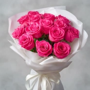Нежный букет из 15 розовых роз средней длины — для тех, кто хочет выразить заботу, признательность или тёплые чувства. Универсальный цвет подойдёт как девушке, так и маме.