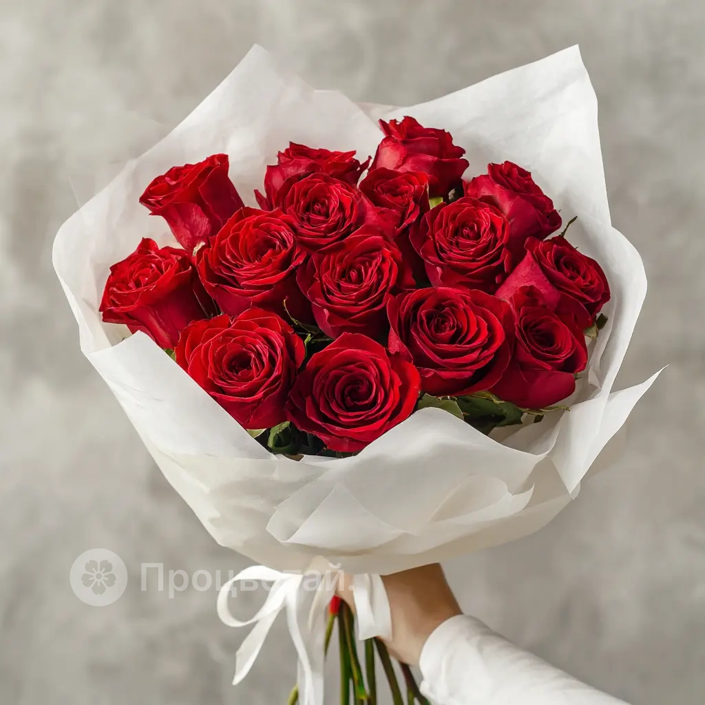 Классический букет из 15 красных российских роз с длинными стеблями — выразительный и эффектный способ признаться в любви. Отличный выбор для торжественных случаев и романтических жестов.