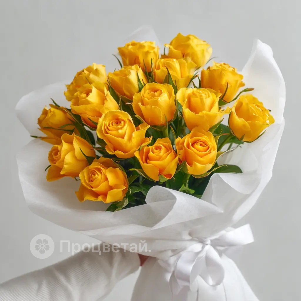 Яркий, солнечный букет из 15 жёлтых роз длиной 40 см. Символ радости, дружбы и позитива. Кенийские розы в этом исполнении станут отличным подарком коллеге, подруге или близкому человеку.