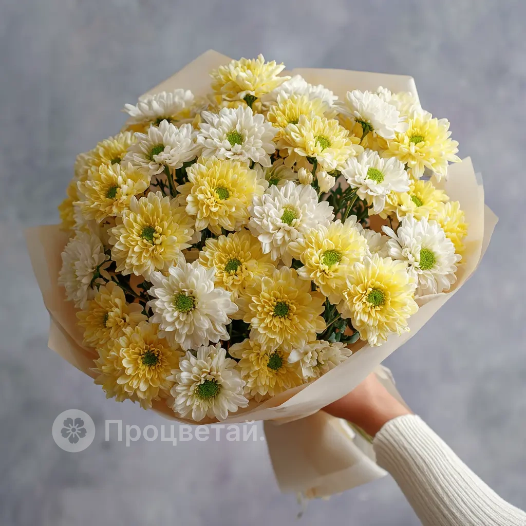 ГлавнаяКаталогБукетыМонобукет из хризантем «Подарок сентября»